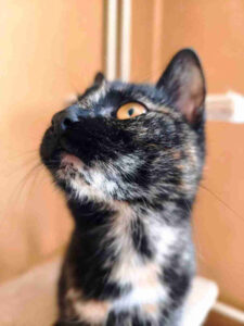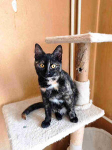 Darf ich vorstellen: die süße Trixie. Sie ist etwa sieben Monate alt, ihr Geburtstag ist der 15.08.2025. Meine Freundin hat sie gefunden, als sie ungefähr drei Wochen alt war. Leider musste sie in ein anderes Land umziehen und konnte nicht so viele Tiere mitnehmen, da sie bereits drei hatte. Deshalb bat sie mich um Hilfe, und Trixie kam zu mir in die Katzenwohnung. Sie hat sich sehr schnell eingelebt und ist natürlich, wie jedes kleine Kätzchen, sehr verspielt. Ich werde sie im April kastrieren lassen und sie dabei auf FIV und FeLV testen. Sie hat bereits zwei Impfungen. Trixie verbringt gerne Zeit auf dem sicheren Balkon, was praktisch ist. Sie lebte mehrere Monate mit zwei kleinen Hunden zusammen und kennt sie daher. Jetzt lebt sie mit zwölf anderen Katzen unterschiedlichen Alters zusammen.