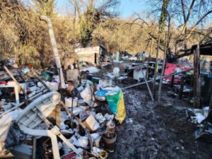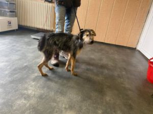 Tüske und seine Kollegen ( kommen demnächst auf die Homepage ) lebten in nicht nur ärmlichen, sondern wahrhaft chaotischen Verhältnissen. Dass Menschen so hausen, war auch für die Tierheimleiterin nicht leicht zu verkraften. Definitiv waren die Besitzer nicht fähig, die Hunde artgerecht zu halten und zu ernähren, auch wenn sie sie sehr liebten. Zusammen mit den Behörden wurden die Hunde unter Tränen der Besitzer beschlagnahmt. Vereinbart wurde, dass zunächst ein Hund bleiben darf.