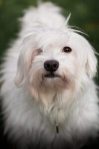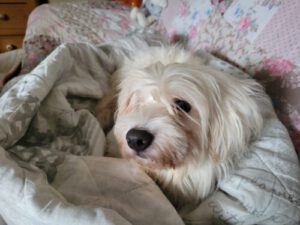 Zemi ist noch nicht stubenrein, macht aber meist auf Unterlagen. Ihr rechtes Auge tränt und muss täglich gesäubert werden, und ihr feines Fell neigt zu Verfilzungen, weshalb sie alle zwei Tage gebürstet werden sollte.